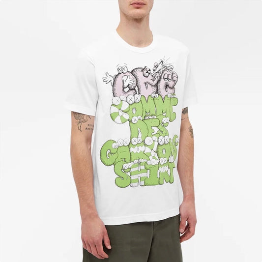 KAWS x Comme des Garcons Shirt Print T-shirt (2021) White/Green/Pink