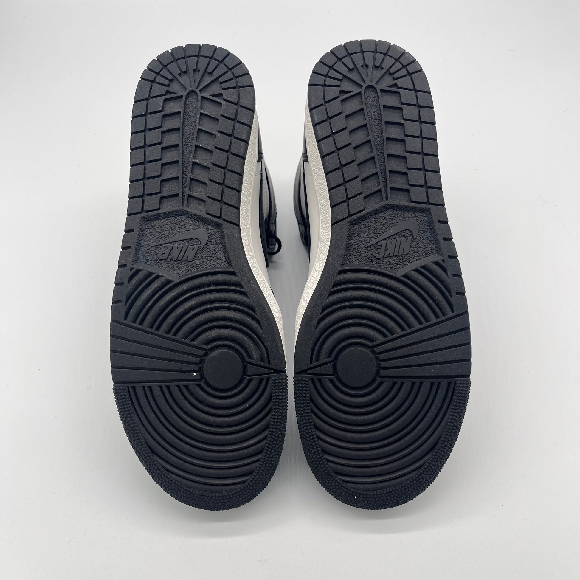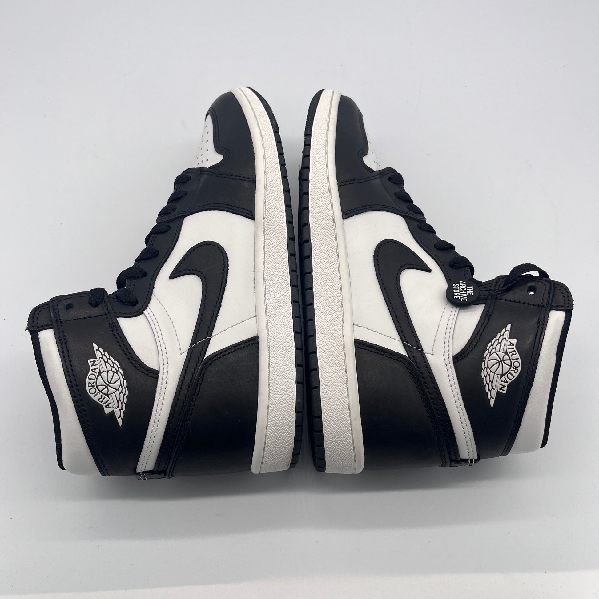 The sneakers feature a familiar black and white color blocking commonly seen on other traditional Jordan 1 colorways. Leather uppers are constructed throughout, while a black Nike Air logo sits on top of its white tongue.