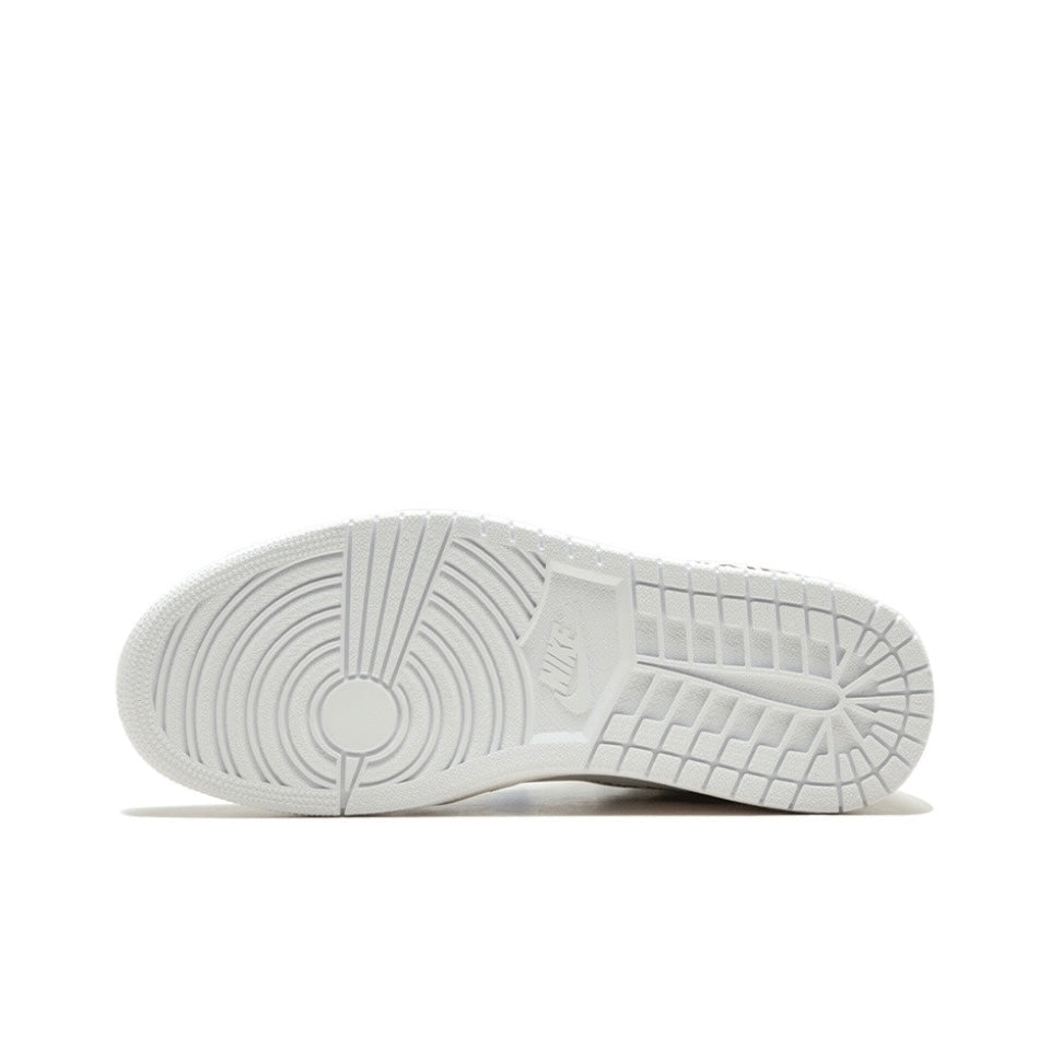 Constructed from a premium mix of rubber, leather, cotton, and synthetic materials, the sneaker features a clean white-on-white colourway. The upper is built with white leather and mesh, complemented by Swoosh branding on both sides and subtle blue accents. Classic Air Jordan Wings logos appear on the ankles, grounding the design in OG Jordan DNA.