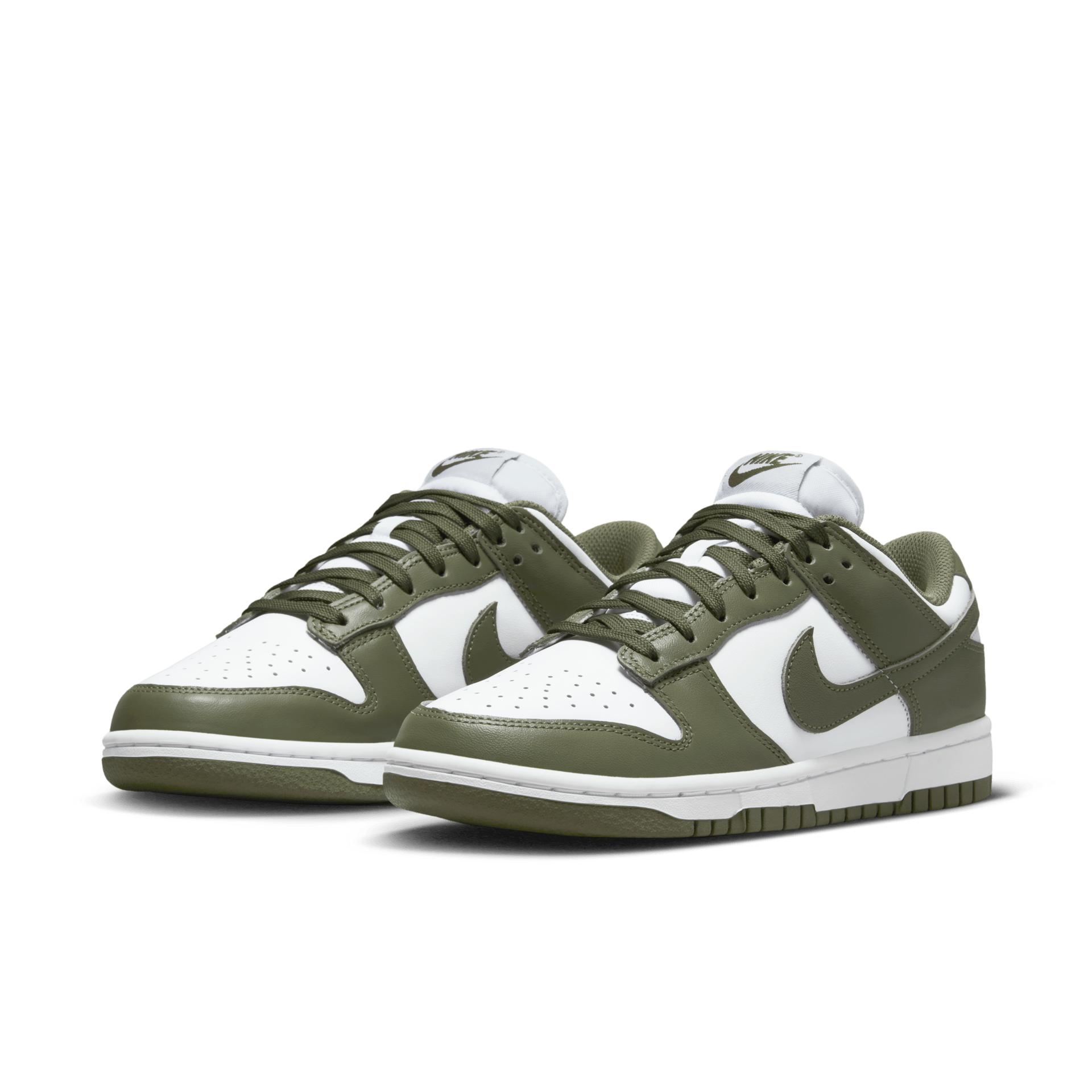 A modern essential with timeless appeal, the Nike Dunk Low Medium Olive brings effortless versatility to the women’s lineup. The silhouette features a crisp white leather base paired with rich Medium Olive overlays, creating a clean two-tone palette that matches seamlessly with everyday wear.