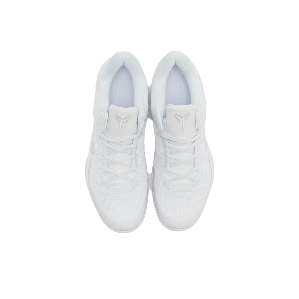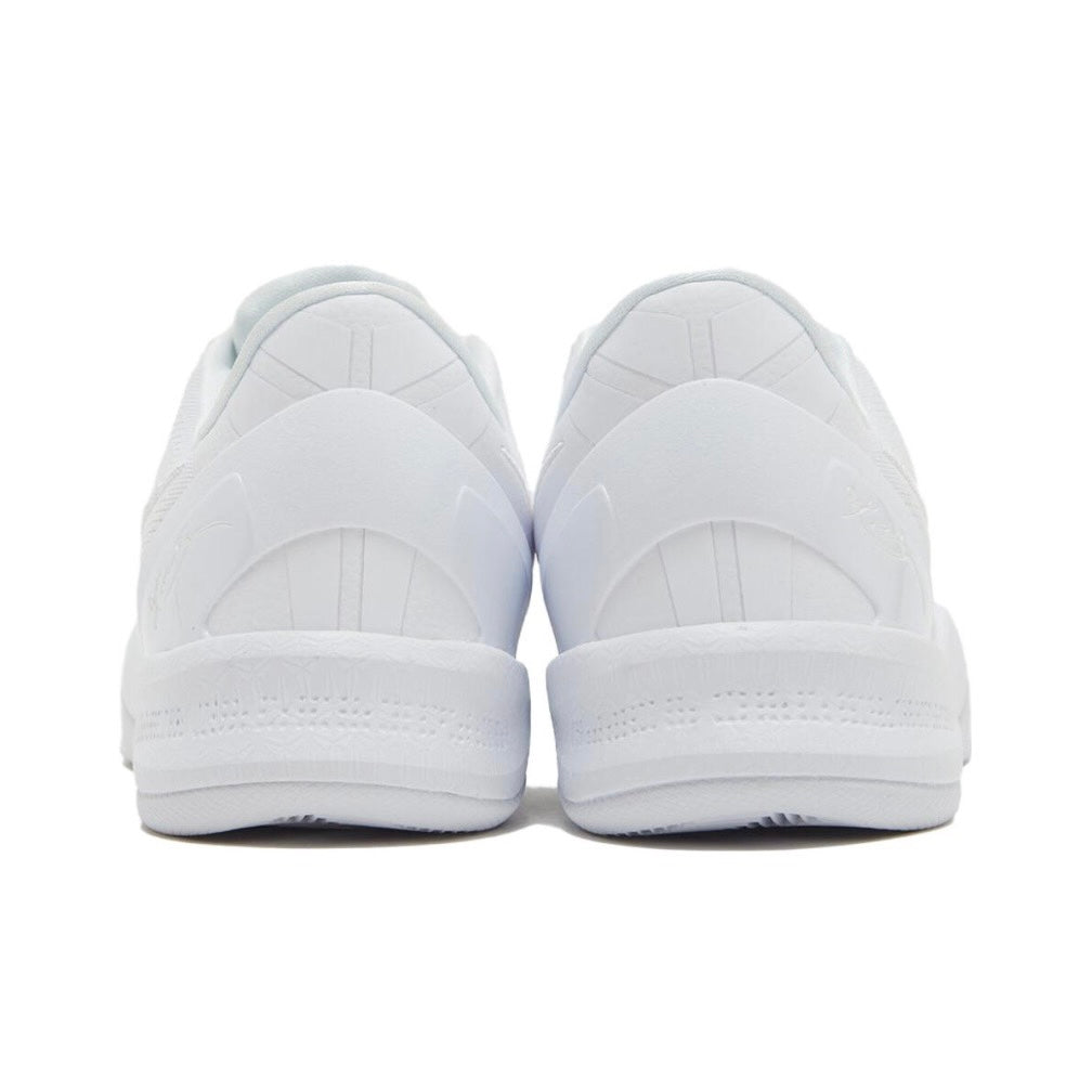 The Nike Kobe 8 Protro 'Halo,' also known as the 'Triple White,' brings back a retooled version of Kobe Bryant's eighth signature shoe in a blank-slate finish.. Designed by Eric Avar, the low-top features an all-white engineered mesh upper with tonal embroidered Swoosh branding. Kobe Bryant’s signature is etched on the external heel counter, while the athlete’s personal logo decorates the tongue. Performance benefits include a drop-in React midsole and carbon fiber shank. Underfoot, a herringbone-tread outsole delivers stop-and-go traction.